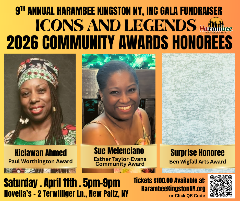 Join us for the 9th Annual Harambee Kingston Gala and Community Awards on Saturday, April 11, 2026, from 5:00 PM–9:00 PM. This year’s Annual Gala will be hosted at Novella’s, located at 2 Terwilliger Lane, New Paltz, NY.